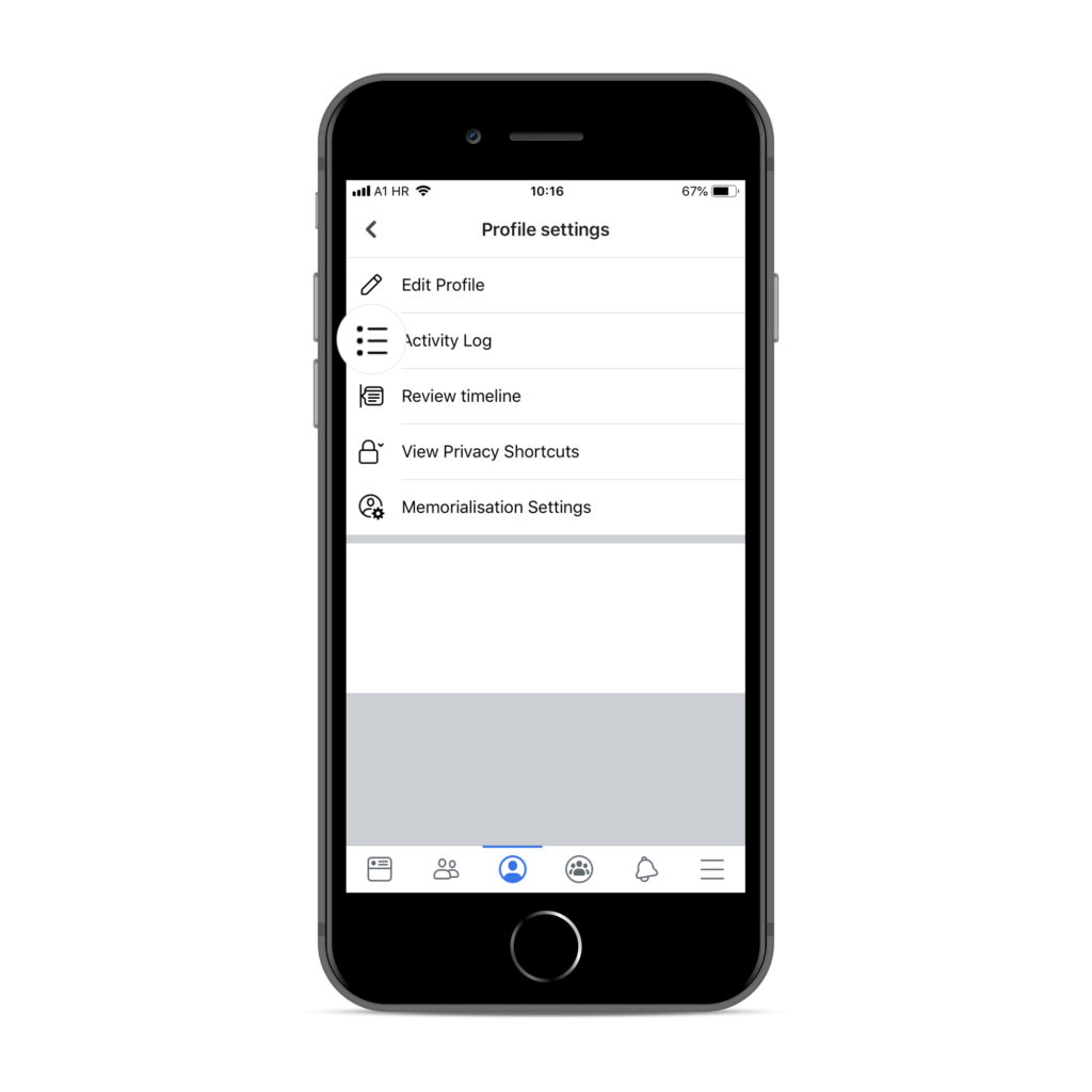 Sada odaberite tri točkice za ulazak u postavke (Settings) te kliknite Activity Log (dnevnik aktivnosti).