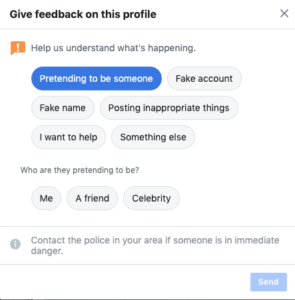 - odaberite Give feedback or report this profile (pošaljite povratne informacije ili prijavite taj profil)
