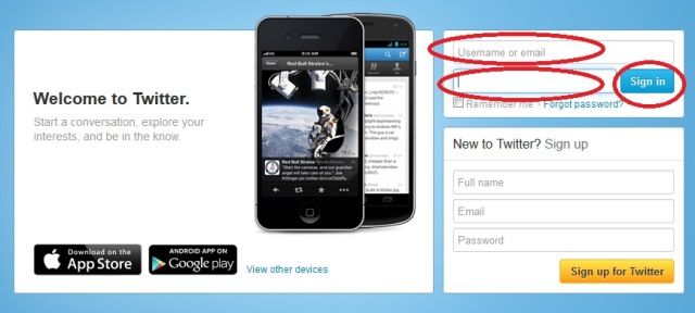 Prijavite se u svoj Twitter profil na početnoj stranici https://twitter.com