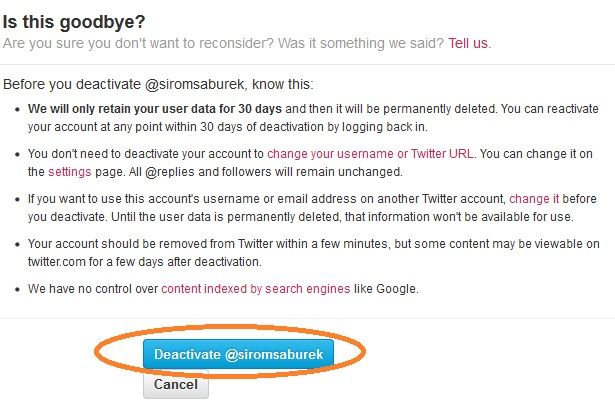 Prije završetka procedure, Twitter će vas pitati je li odlazak zaista stvaran? :)