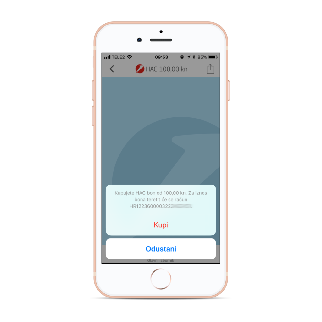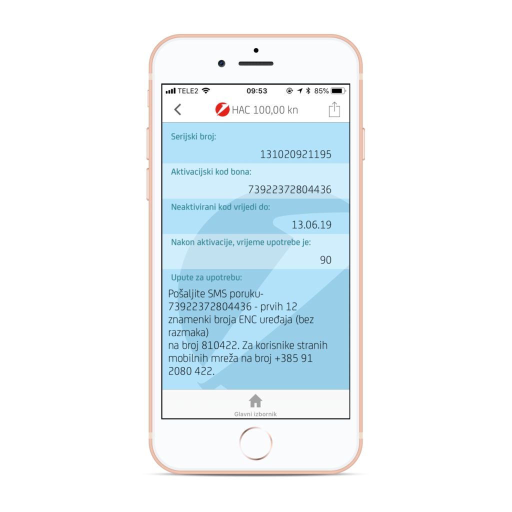 Ukoliko ste odabrali kupnju HAC bona putem mobilnog bankarstva, slijedite ove korake. Ukoliko imate fizički bon koji ste kupili na prethodno nabrojanim prodajnim mjestima, preskočite sve do koraka broj 3.