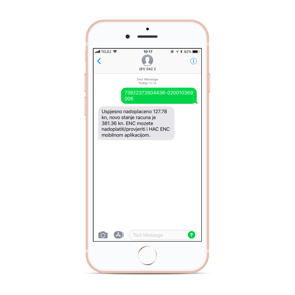 Ubrzo nakon slanja SMS-a, stići će vam obavijest o uspješnoj nadoplati vašeg ENC računa i stanju s kojim raspolažete.