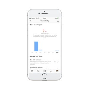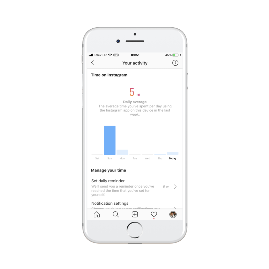 Ovaj prikaz pokazuje koliko npr. vaše dijete provodi vremena na Instagramu za trenutni dan i tjedan. Također možete vidjeti koliki je prosjek korištenja aplikacije.