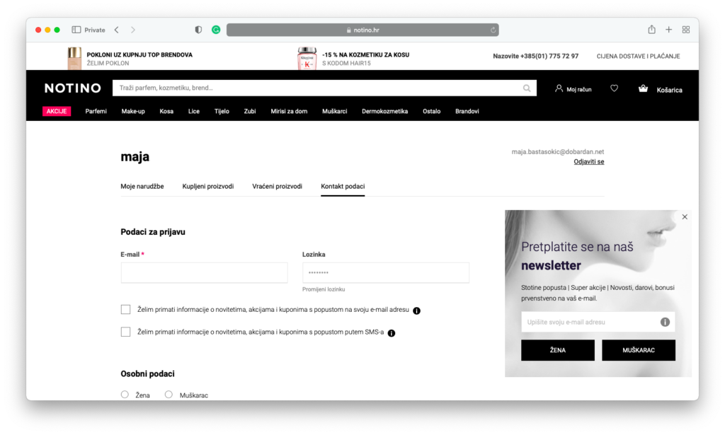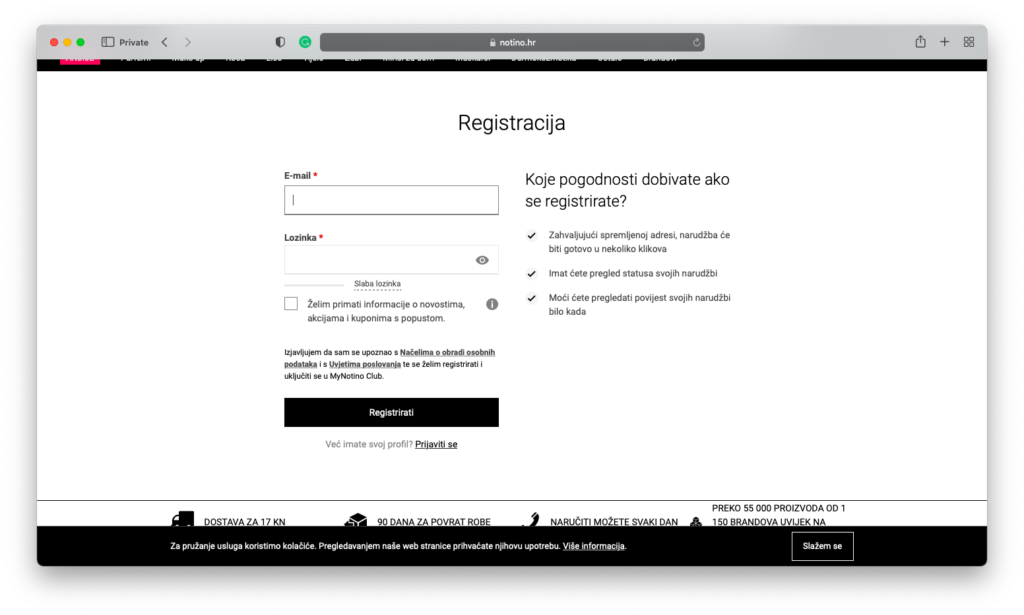 Iako možete obaviti kupnju na Notinu i bez kreiranja korisničkog računa, kao gost, ipak postoje neke prednosti poput pristupa akcijskim ponudama, sudjelovanja u nagradnim igrama i uređivanja narudžbi.