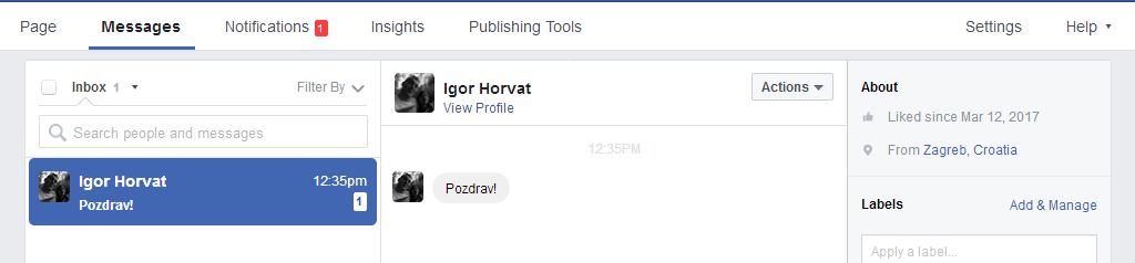 Messages (Poruke) otvara sandučić s porukama koje je vaša stranica zaprimila od strane posjetitelja i korisnika vaših usluga. Važno je pratiti zaprimljene poruke te odgovarati na njih u što kraćim rokovima.