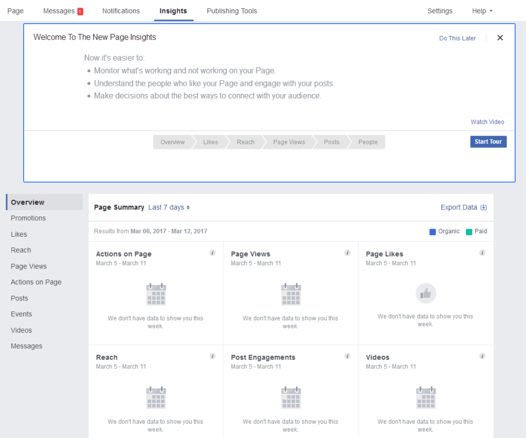 Insights (Uvidi) je stranica s nizom alata koji vam olakšava pregled aktivnosti i rezultata na vašoj stranici, prikazuje statistike o broju pregleda sadržaja, koliki je reach (doseg) vaših objava odnosno kolikom broju ljudi se objava prikazala u News Feedu i sl.