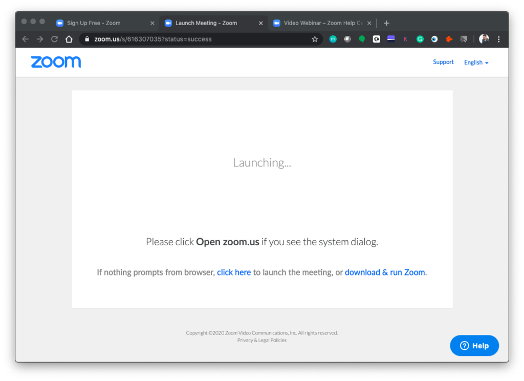 Kao na slici, prilikom pokretanja sastanka možete odabrati želite li sastanak održati kroz internetski pretraživač ili putem aplikacije Zoom.