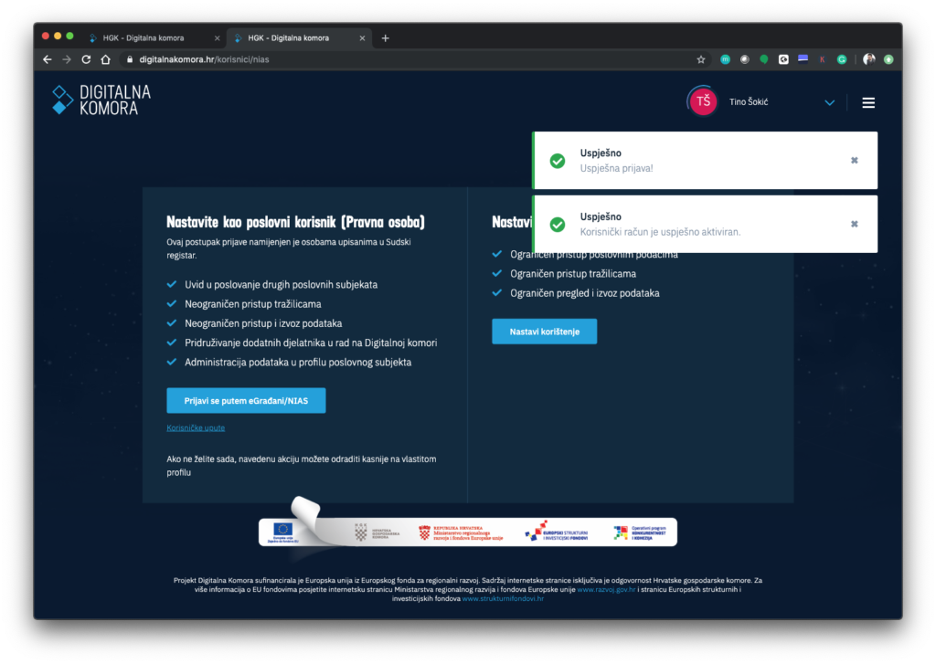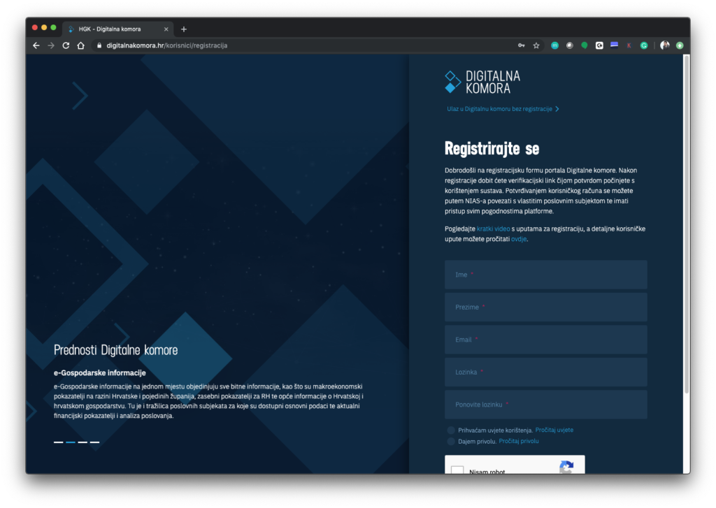 Možda ste primijetili da se možete prijaviti kao fizička osoba i kao poslovni subjekt. Cilj je da se prijavimo kao poslovni subjekt, jer tada imamo priliku koristiti usluge digitalne komore bez ograničenja.