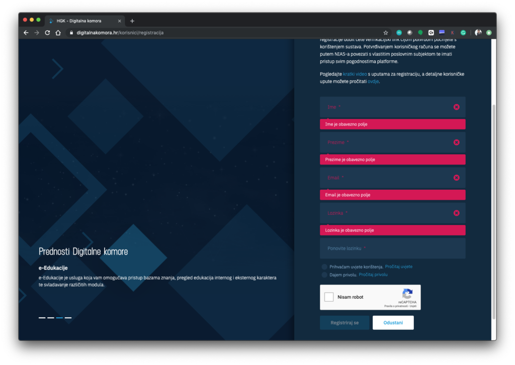- Dokažite da niste robot (sigurnosna provjera) i kliknite Registriraj se za nastavak.