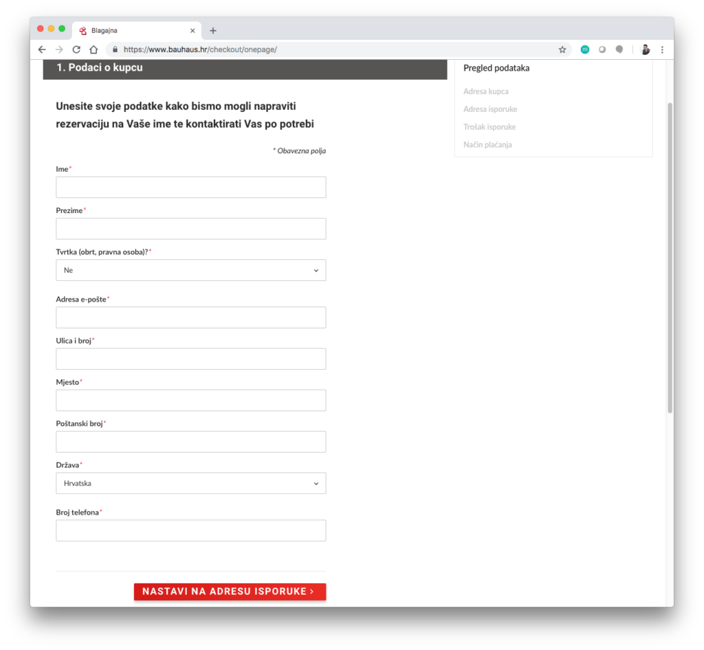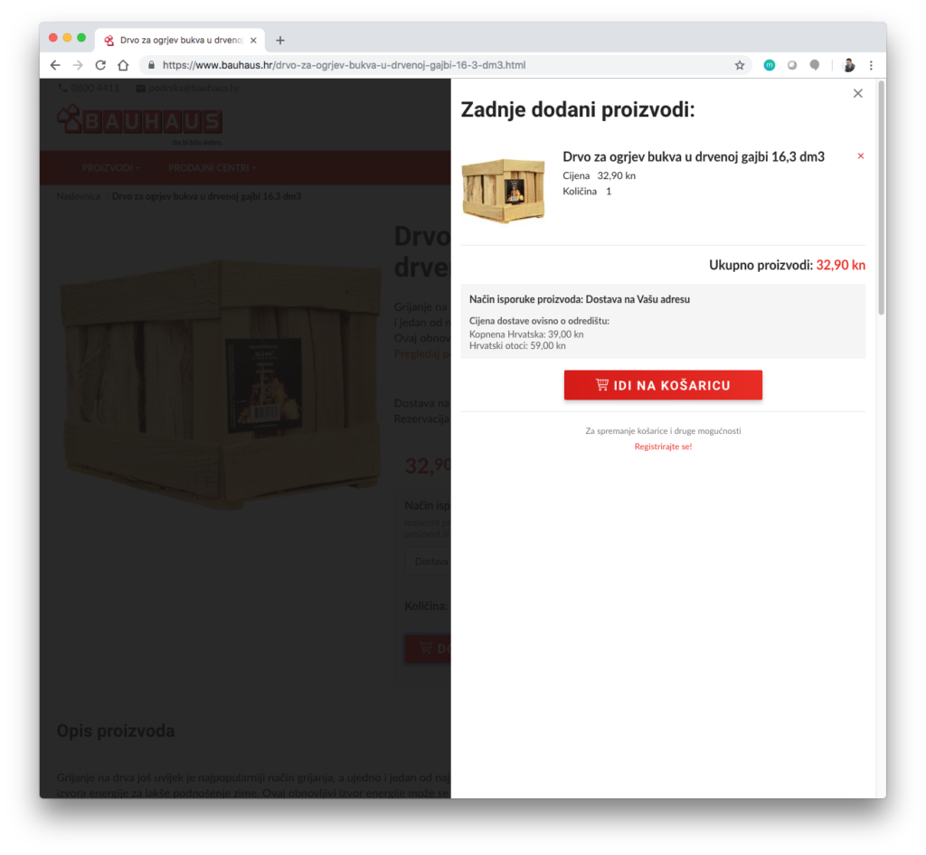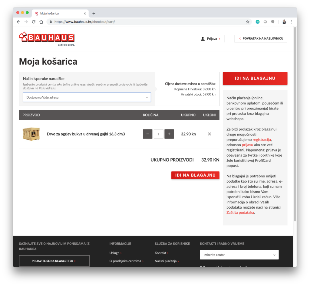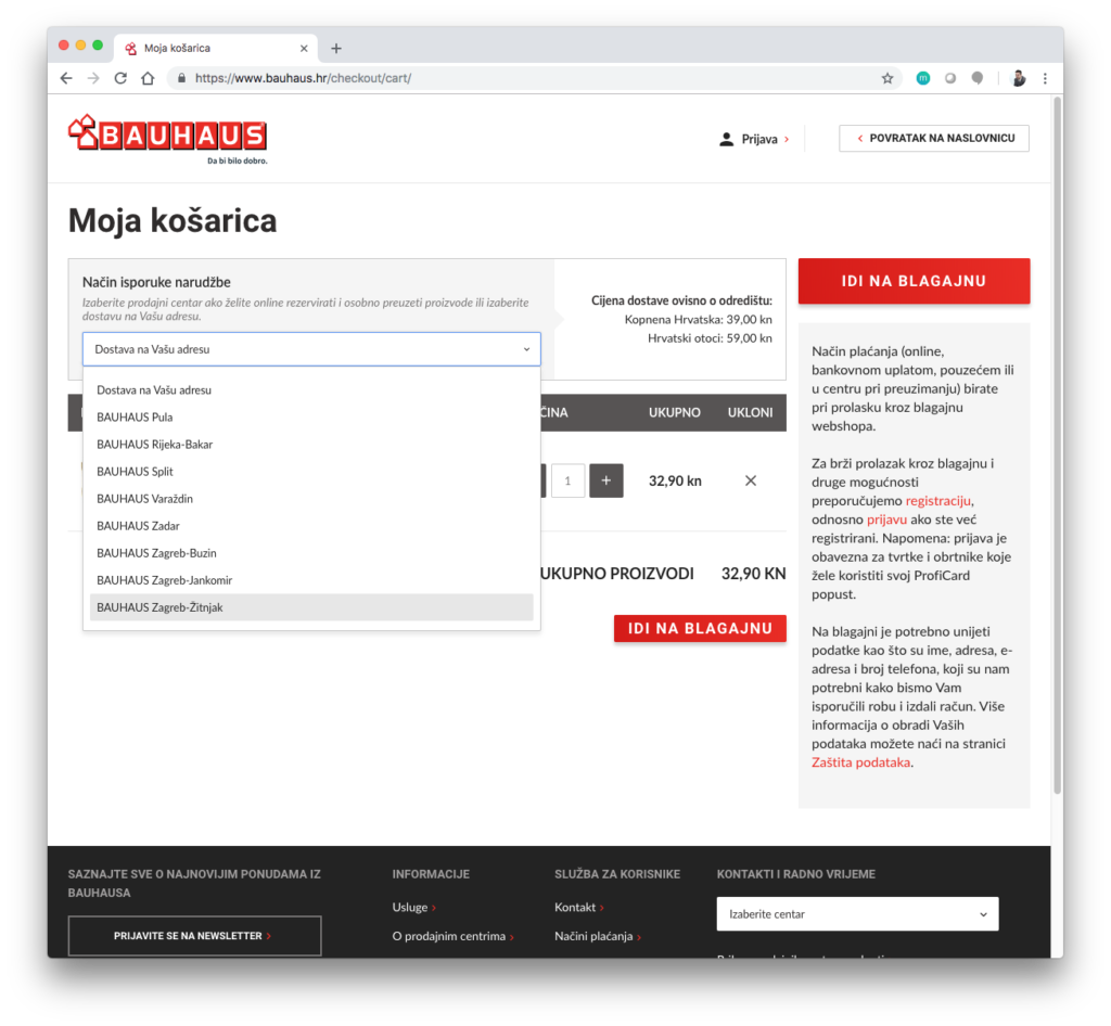 Proći ćemo kroz postupak kupnje putem Bauhaus internetskog dućana ilivam webshopa.