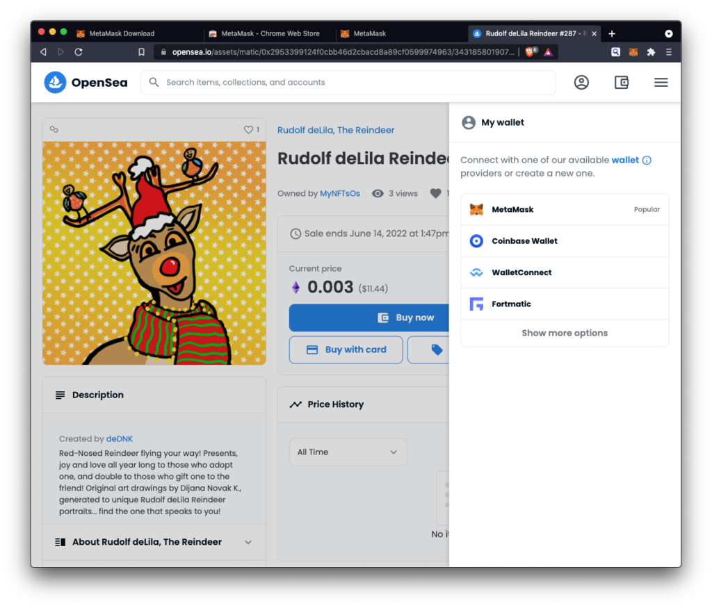 S obzirom na to da sada imate Metamask novčanik, u svega nekoliko koraka nađite NFT koji vam se sviđa i kupite ga.