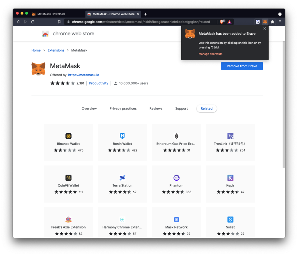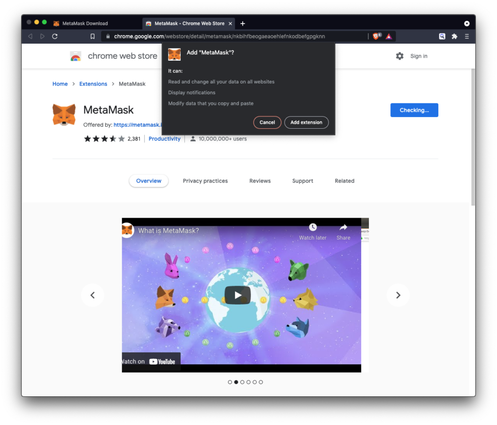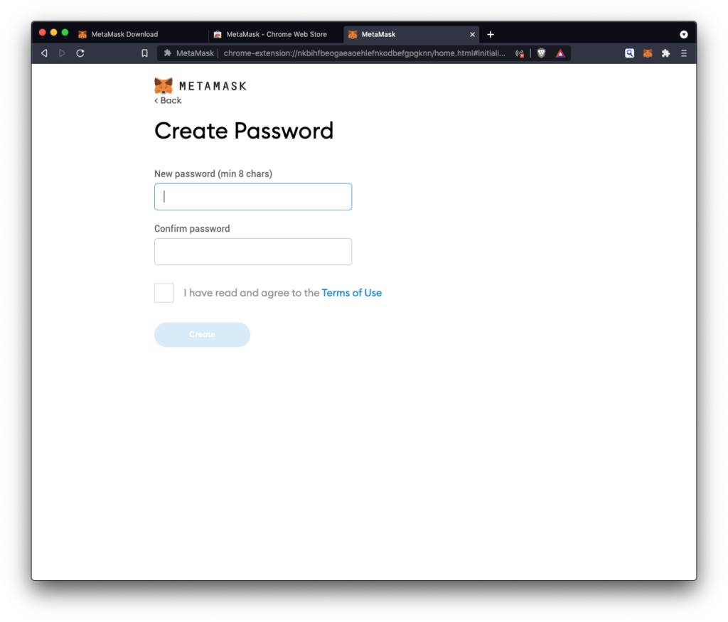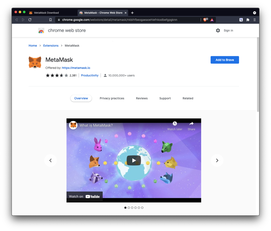 - Preuzmite Metamask za svoj browser (mi koristimo Brave browser – sličan Chromeu).