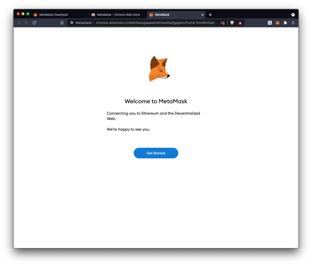 Nakon dodavanja Metamaska u browser odmah ćete bit preusmjereni na početnu stranicu novčanika, te ga u nekoliko koraka konfigurirajte za korištenje.