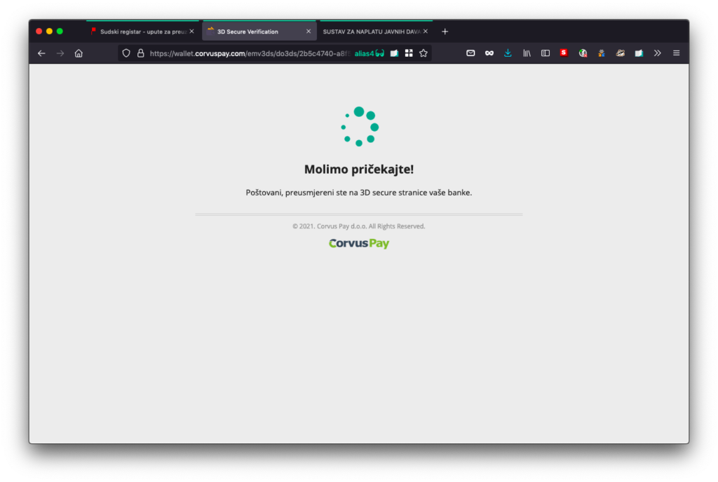 - obratite pozornost gdje ste preusmjereni (corvuspay.com) i unesite svoje podatke