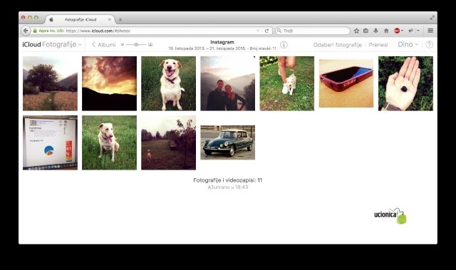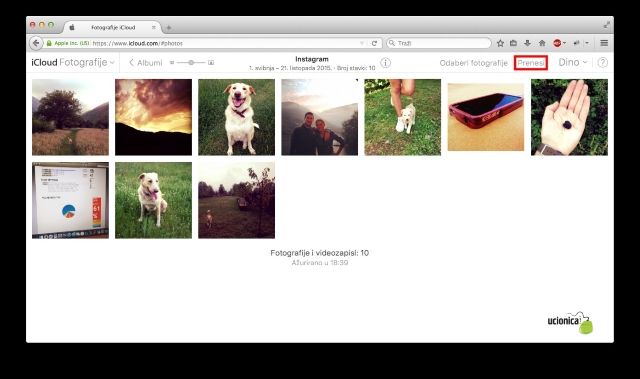 Kako biste prebacili fotografiju s računala na iUređaj pristupite albumu u koji želite smjestiti fotografiju, u našem slučaju to je album pod nazivom “Instagram” te kliknite na “Prenesi”.