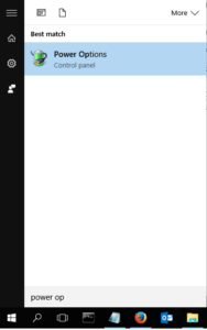 Otvorite „Power Option“ izbornik na način da utipkate „Power Options“ u Start izborniku.