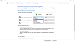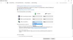 U izborniku su vam ponuđene opcije za definiranje što čini „power“ tipka (fizička tipka za uključivanje računala ili laptopa), što čini „sleep“ tipka (fizička tipka predviđena za uključivanje „Sleep“ načina rada koje vaš laptop ne mora imati) te što se događa ukoliko spustite ekran laptopa. Za sve od nabrojanog je moguće definirati ukoliko je laptop spojen na punjač odnosno dok je na baterijskom napajanju, dok je za stolno računalo opcija sa baterijskim radom onemogućena.