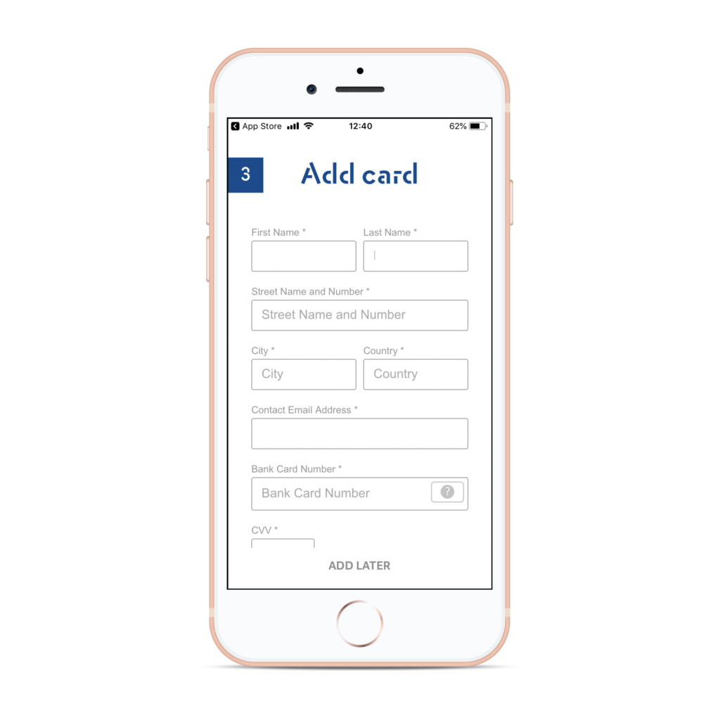 Karticu putem koje ćete plaćati parking možete dodati u ovom koraku, a možete i preskočiti pa nakadno dodati po potrebi, a plaćati možete s Visom, MasterCardom, Maestrom, American Expressom i Dinersom.