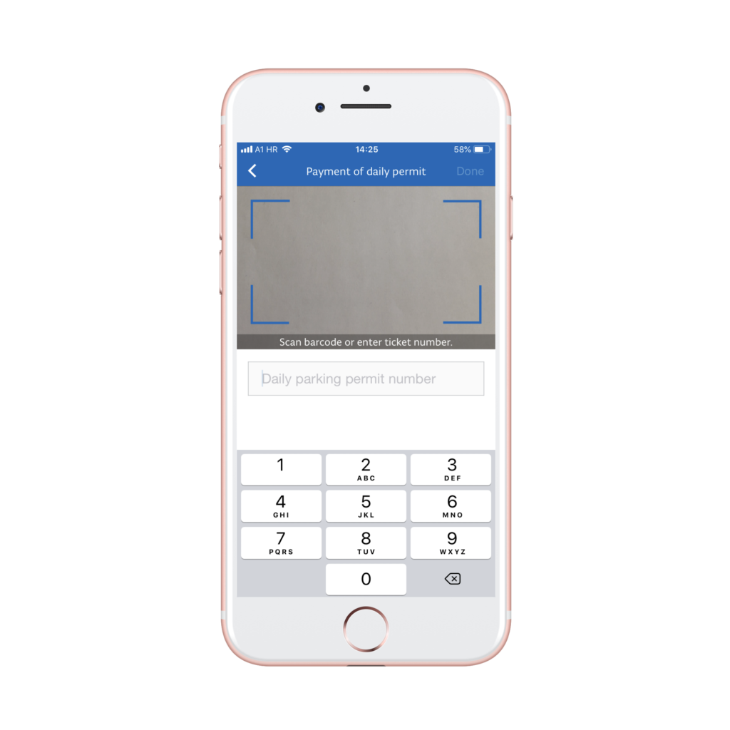 Sve što trebate jest u aplikaciji pritisnuti DAILY PERMIT (Dnevna karta) i skenirati barkod s uplatnice ili unijeti broj karte.