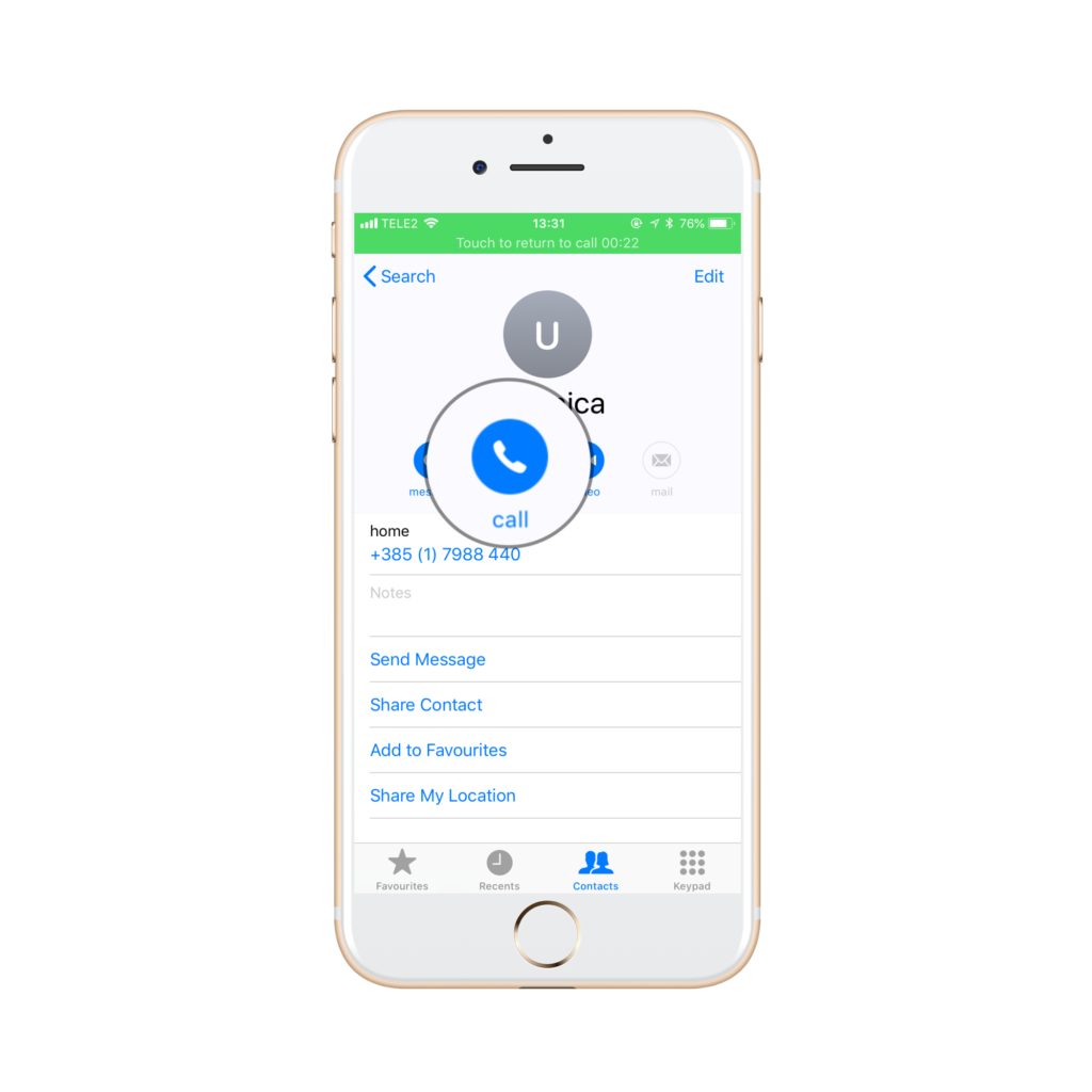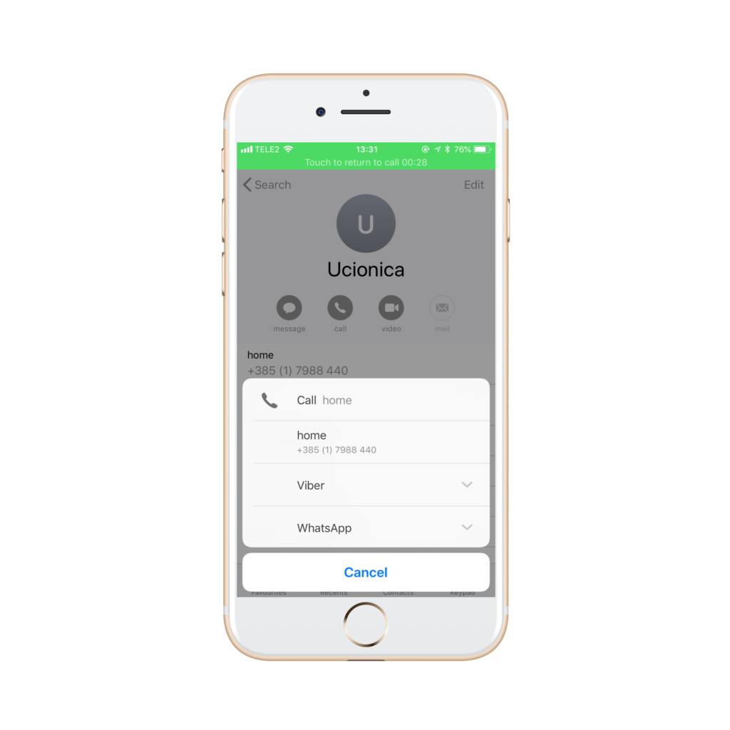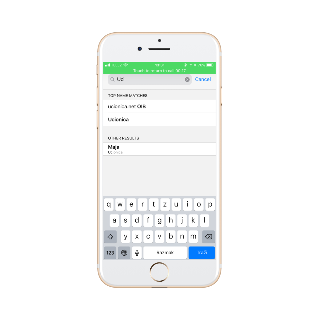 Nakon što ste pritisnuli add call, ponuđen vam je telefonski imenik. Odaberite drugog učesnika konferencijskog poziva.