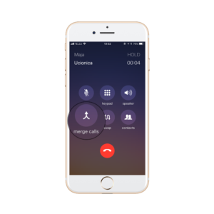 Kada je drugi učesnik odgovorio na poziv, odnosno nakon uspostavljanja poziva, pritisnite tipku merge calls (spajanje poziva).