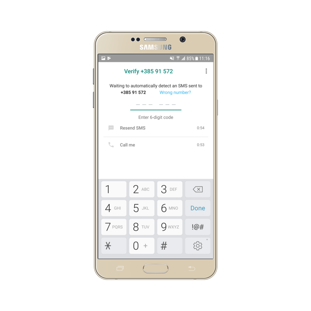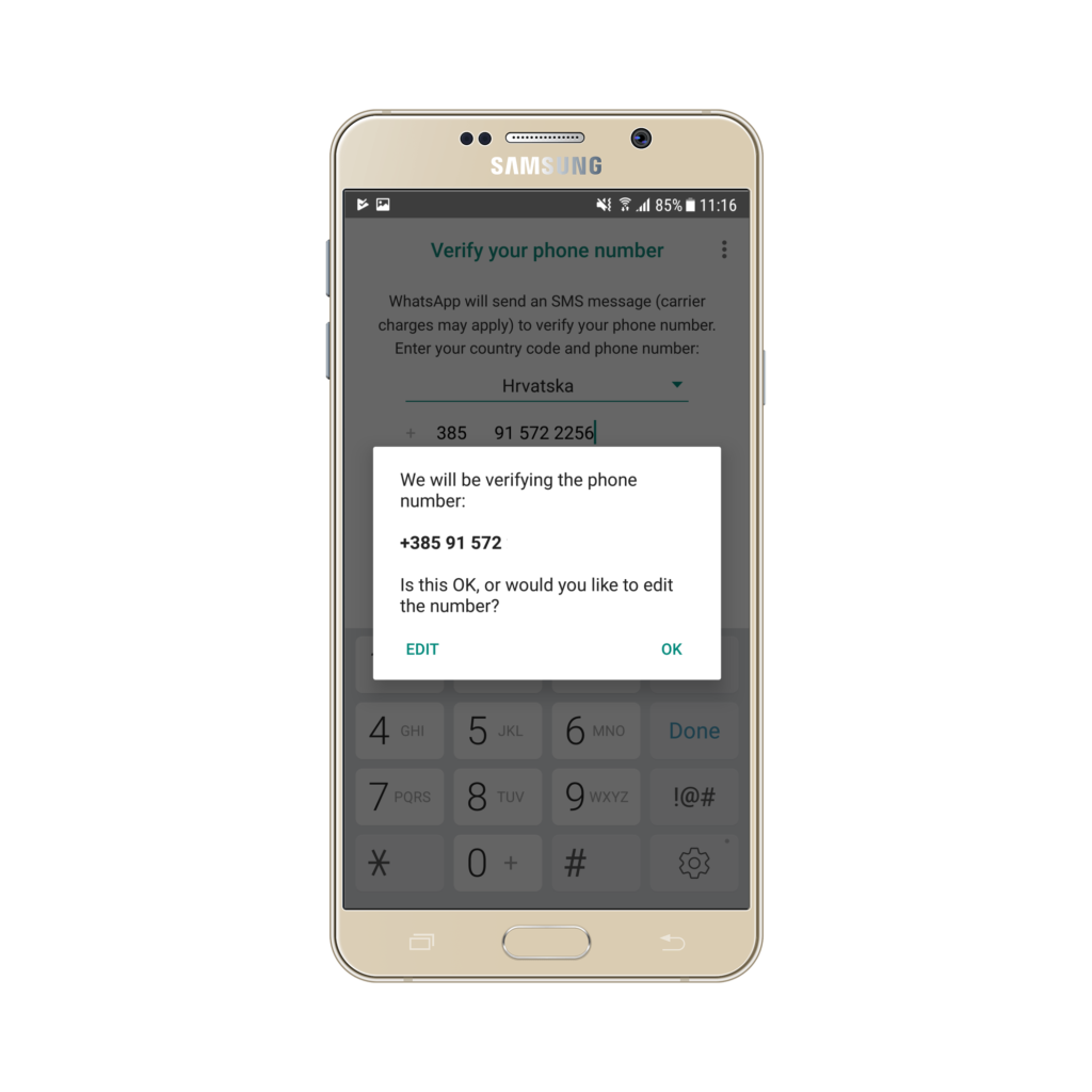 Unesite svoj broj mobitela kako bi ga WhatsApp potvrdio te ćete na njega primiti SMS s aktivacijskim kodom za korištenje aplikacije.