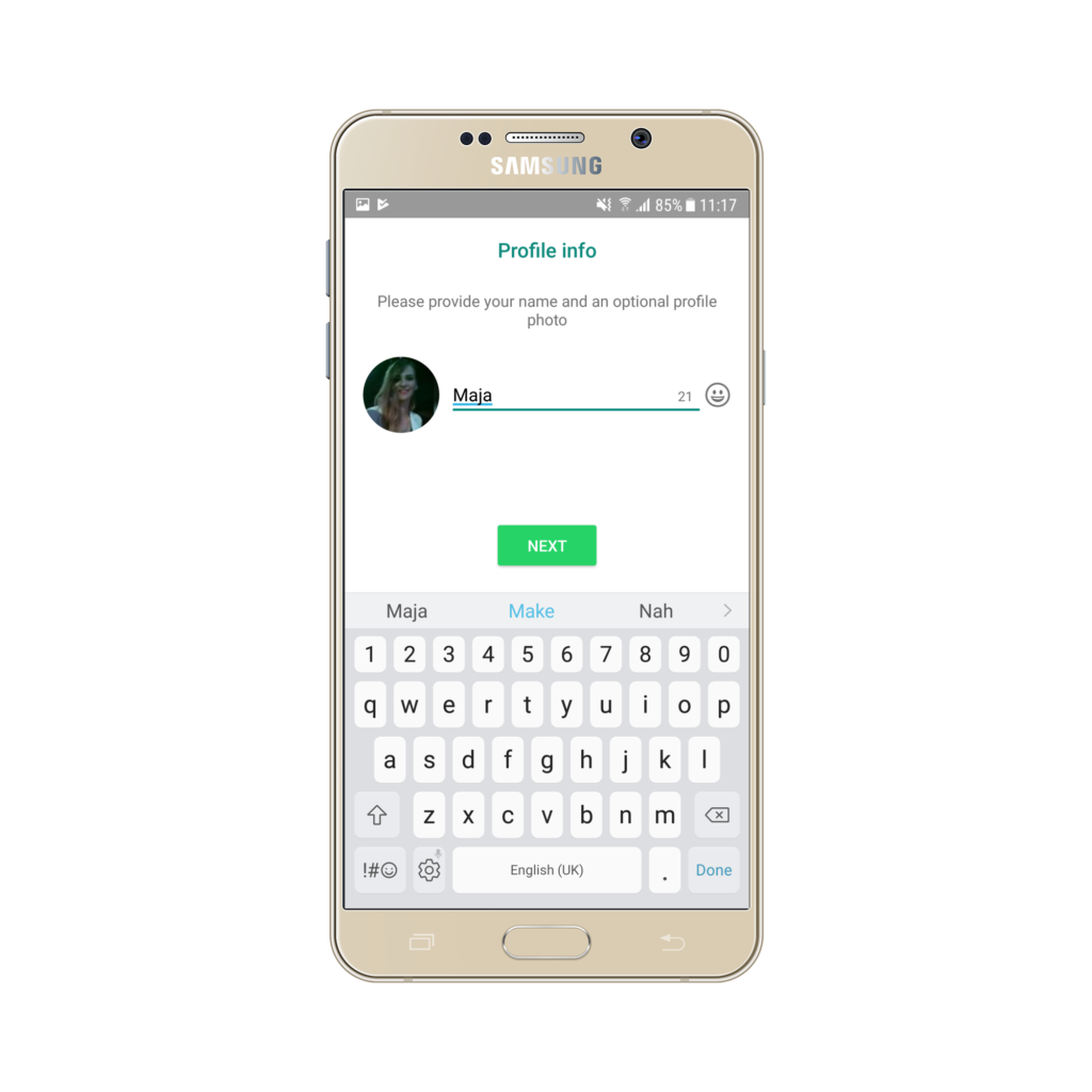 Sada ćete trebati unijeti ime koje će se prikazivati u aplikaciji i pritinsuti Next (Dalje).