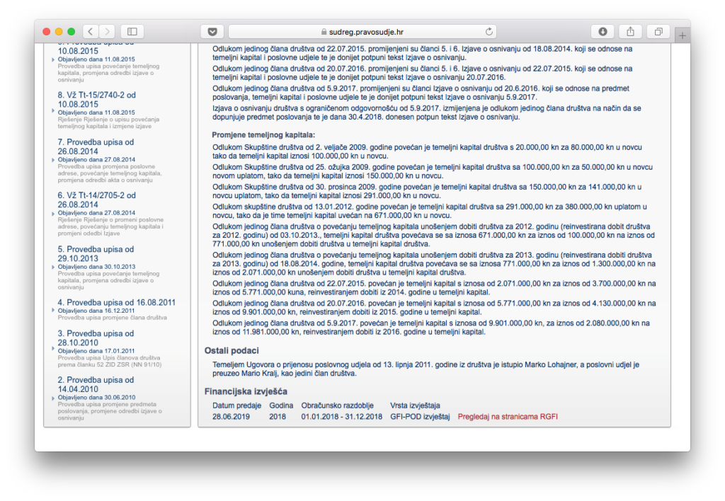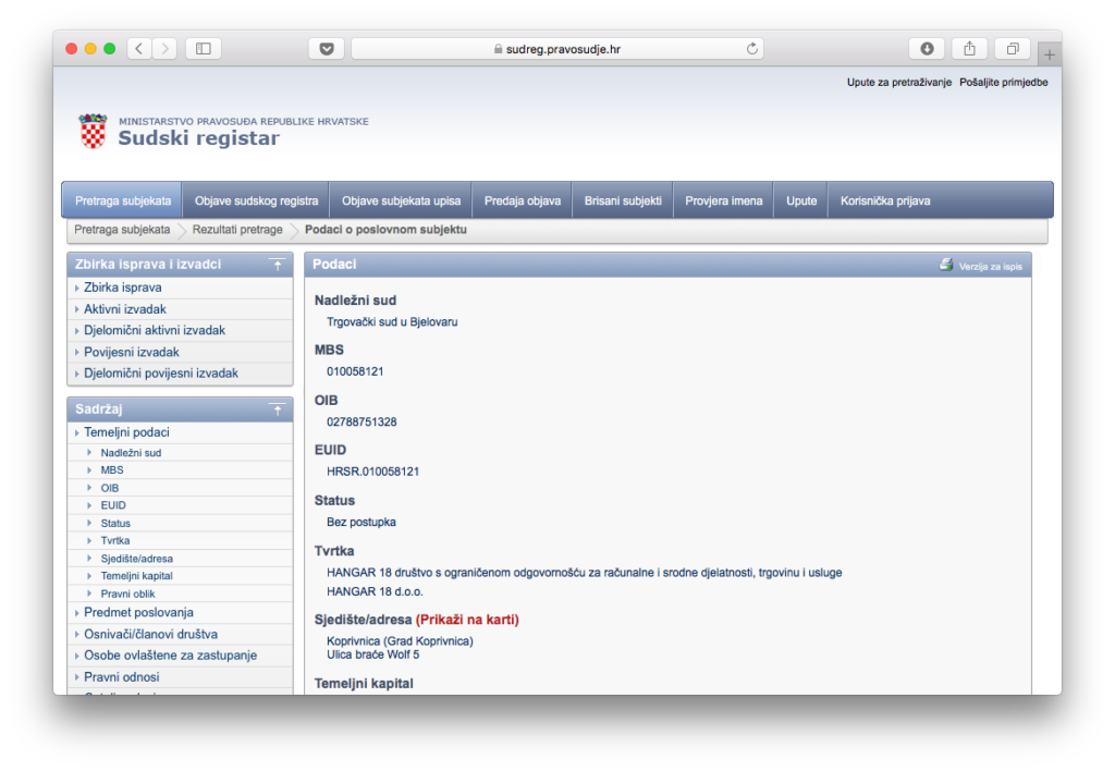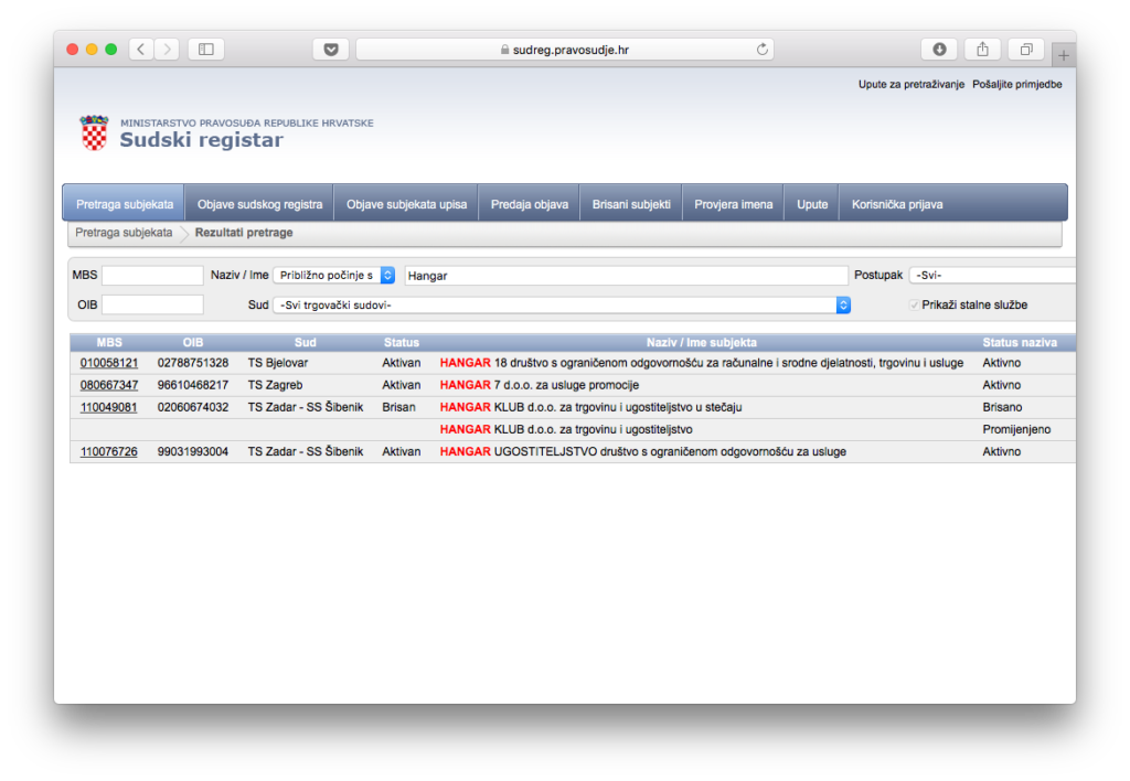 - Postoji registar svih tvrtki dostupan na adresi sudreg.pravosudje.hr