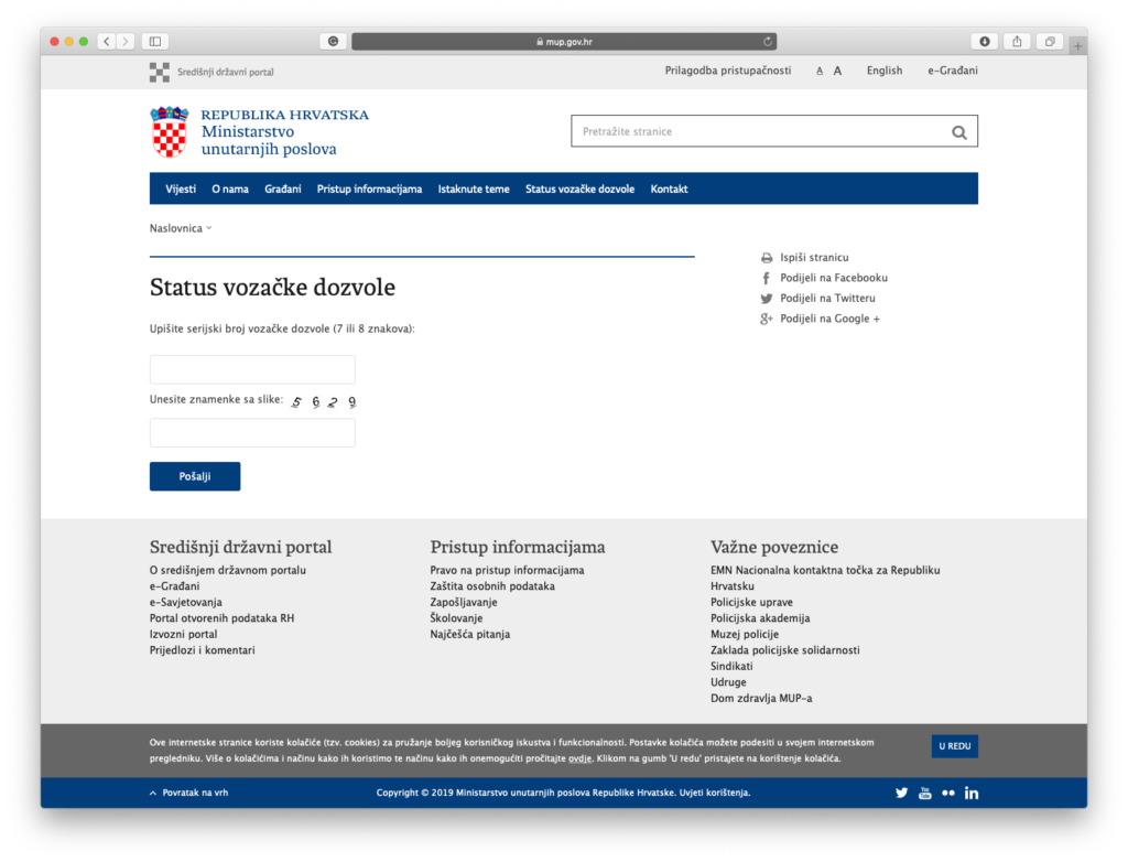 Unesite kontrolne znakove sa slike, pritisnite plavi gumb Pošalji i pričekajte trenutak.